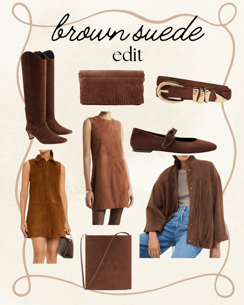 I have always loved a suede piece, but this trend is has skyrocketed into stardom for this fall. Everything from dresses to belts to loafers (which I’m also loving) is everywhere for fall. Western wear is back again this fall, with fringes and nods at Western heritage, like turquoise and silver, which are sure to trend upward. I will do a further post on Western wear, but for now, here is some suede inspo as a starter!